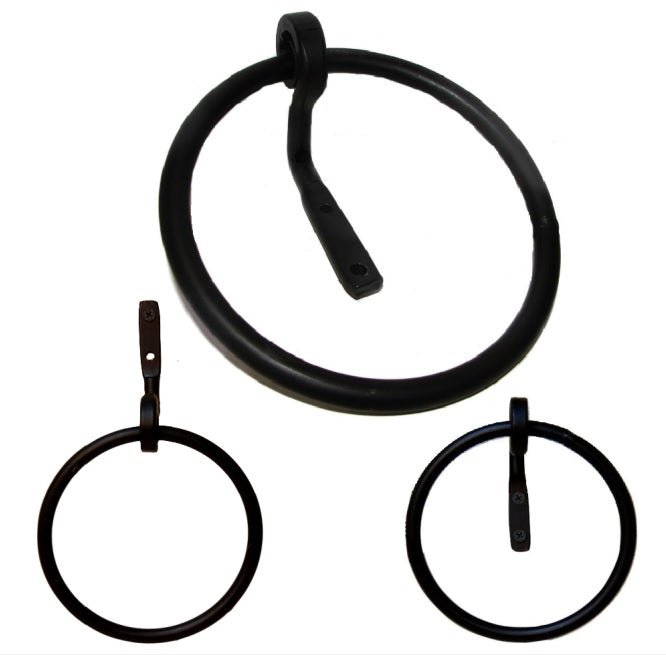 Amish Blacksmith SOLID WROUGHT IRON 3 Piece Towel Ring Set Create a simple, yet classic and elegant accent to your bath, kitchen or anywhere a handy towel is needed with three of our popular our solid wrought iron towel rings....